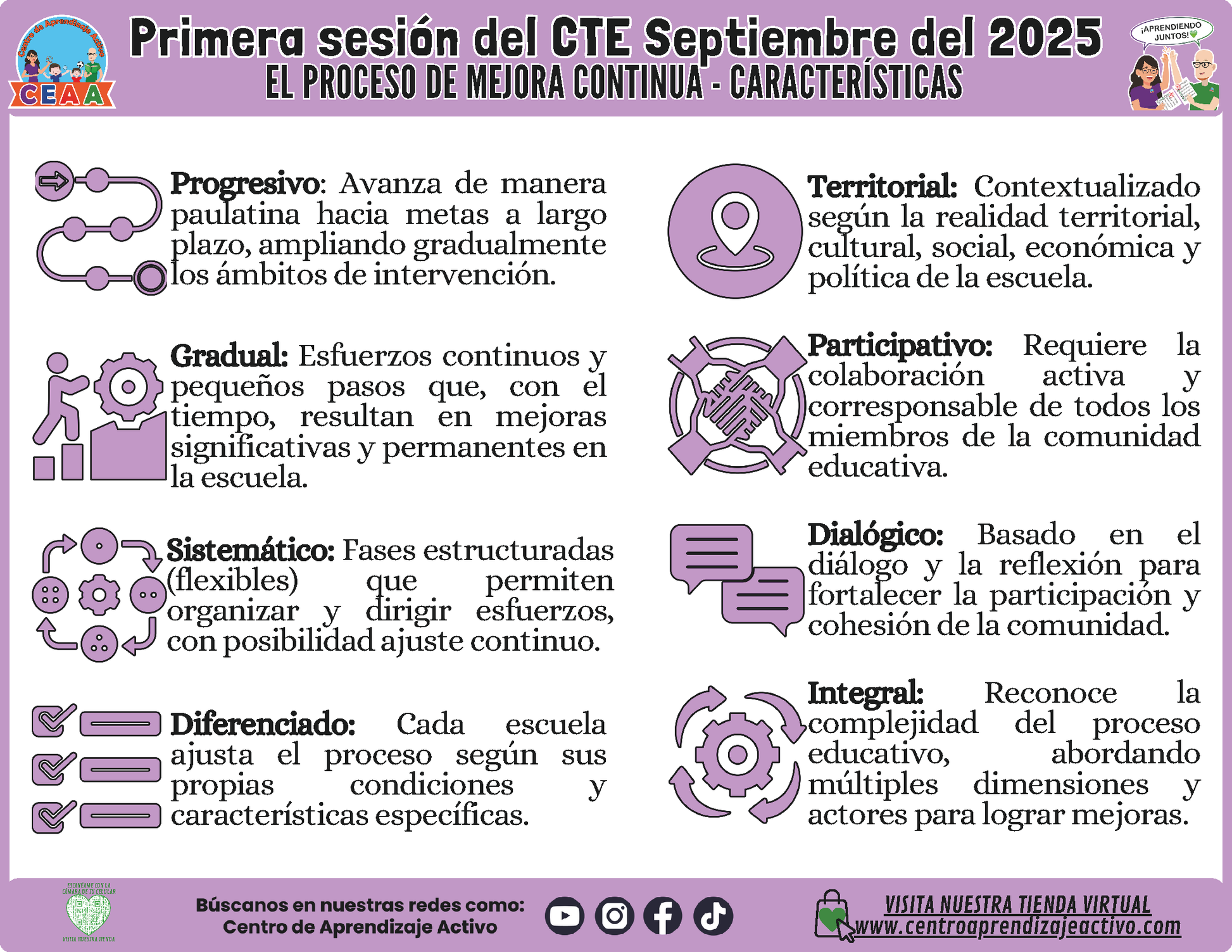 INFOGRAFÍA CTE SESIÓN 1: EL PROCESO DE MEJORA CONTINUA - CARACTERÍSTICAS (Editable en PowerPoint)