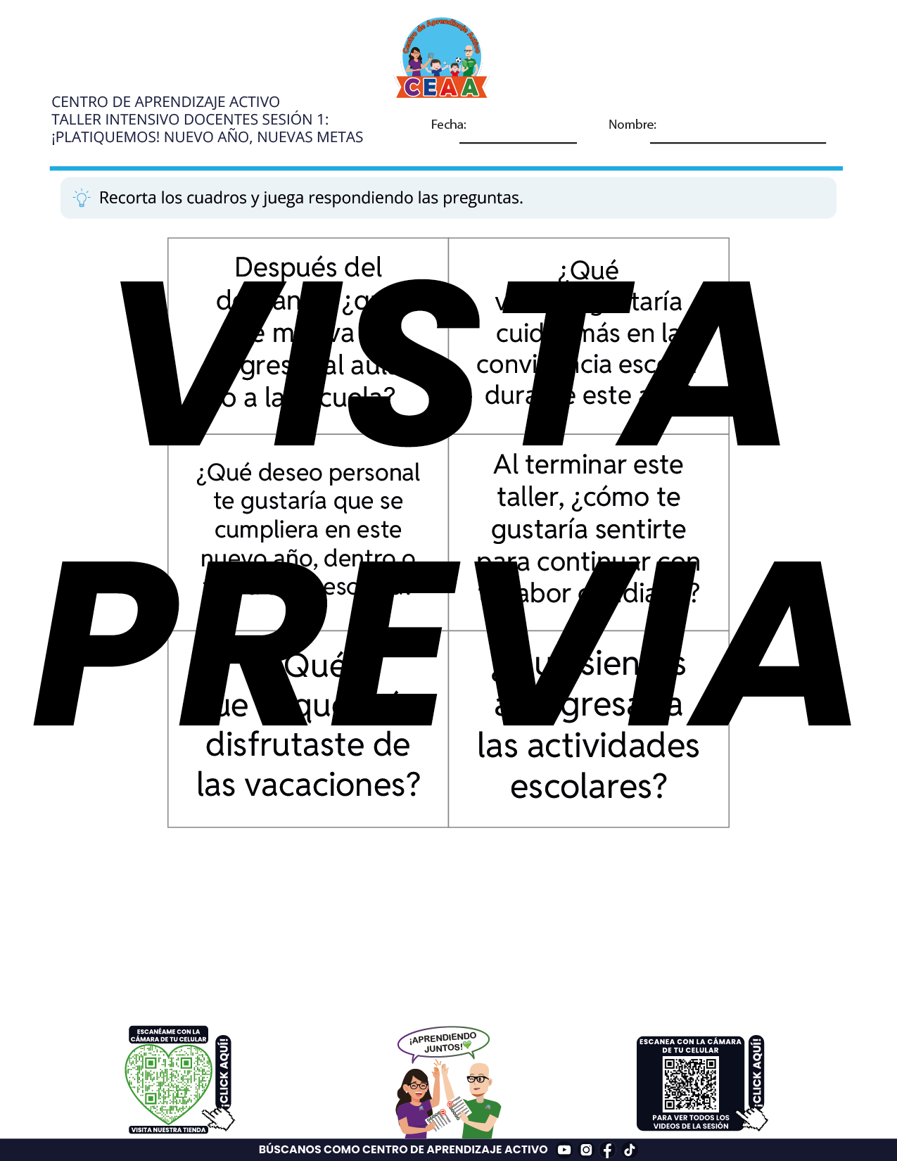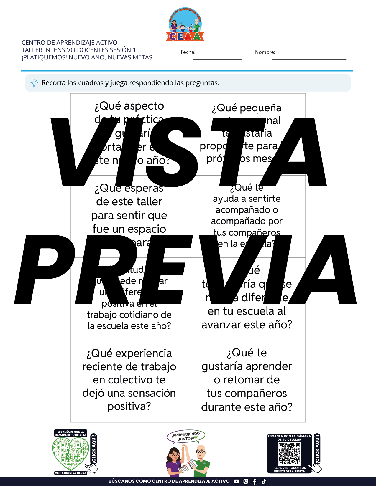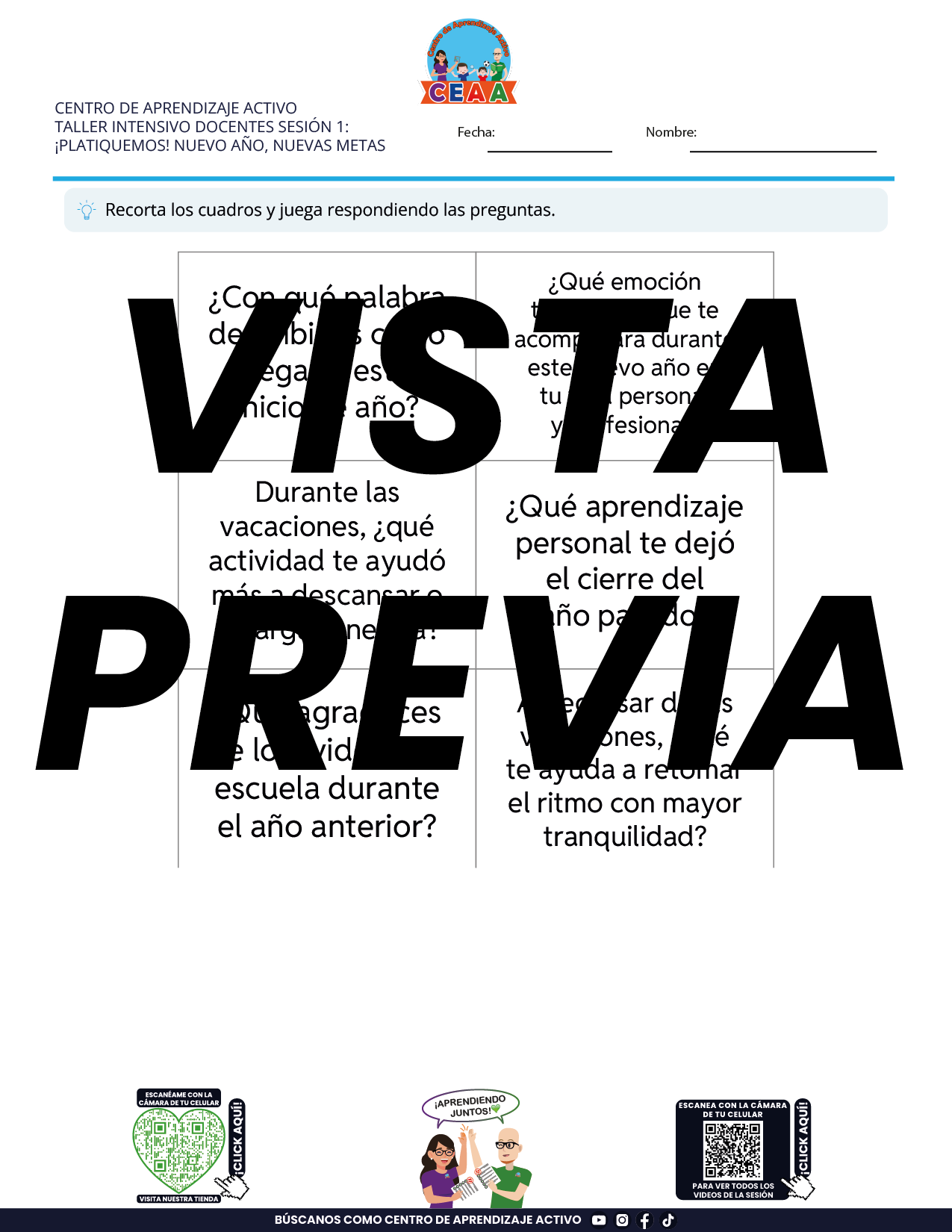 Juegos de Estudio para Imprimir Taller Intensivo Docentes Sesión 1 Enero 2026 en PDF