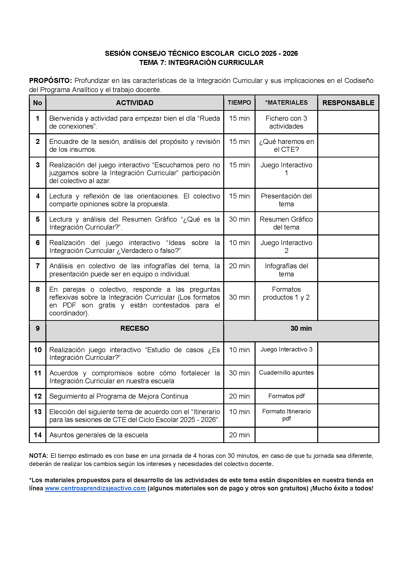 Propuesta Orden del Día Tema 7: INTEGRACIÓN CURRICULAR (Editable en Word)
