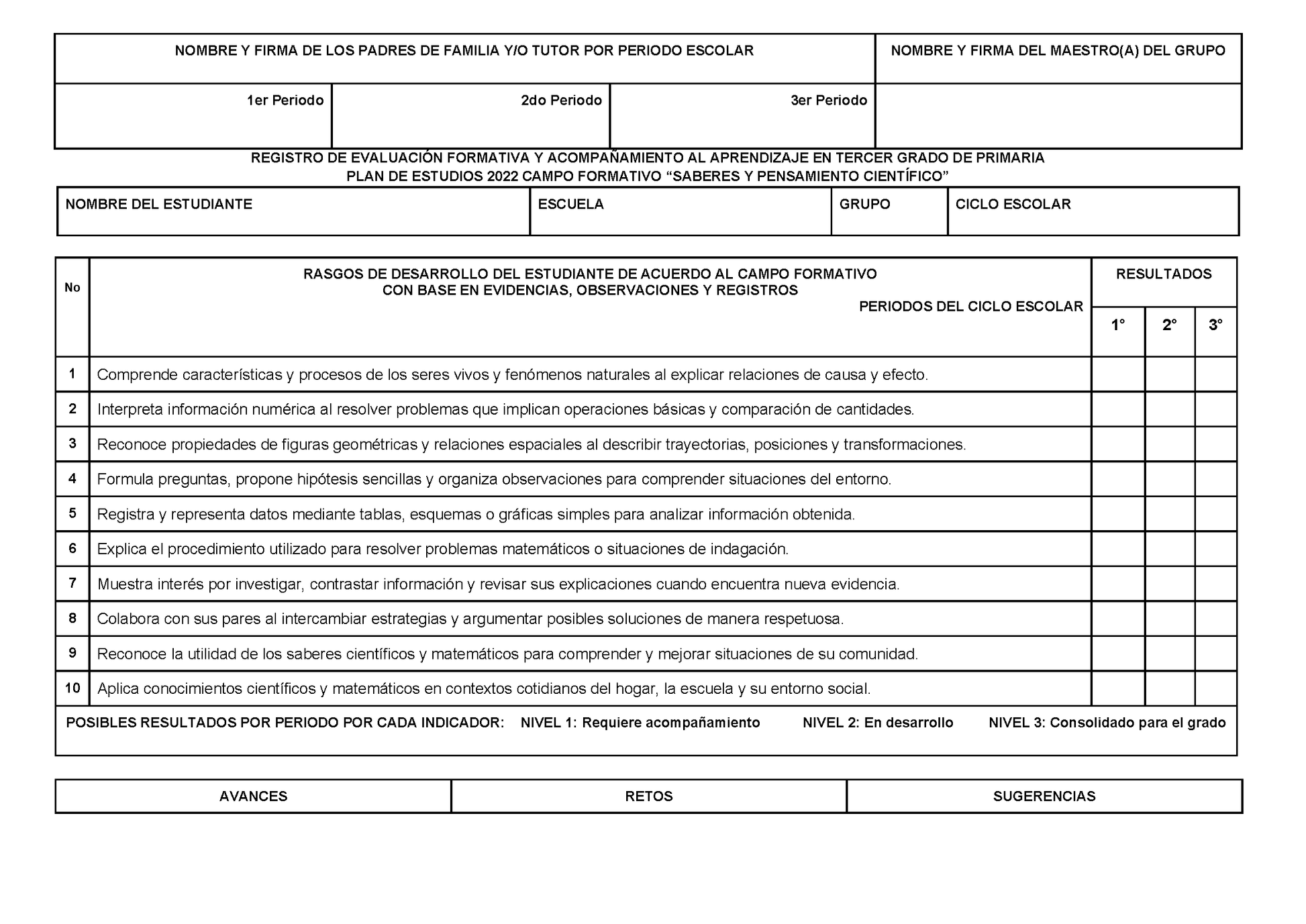 REGISTRO DE EVALUACIÓN FORMATIVA Y ACOMPAÑAMIENTO AL APRENDIZAJE EN TERCER GRADO DE PRIMARIA (Editable en Word)