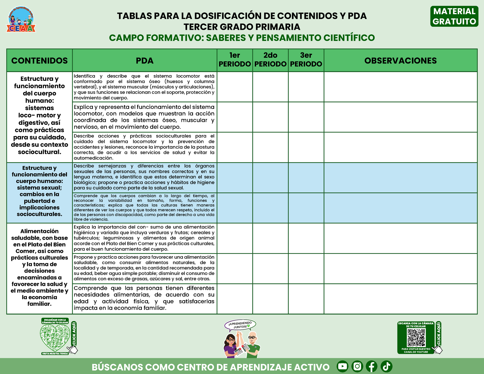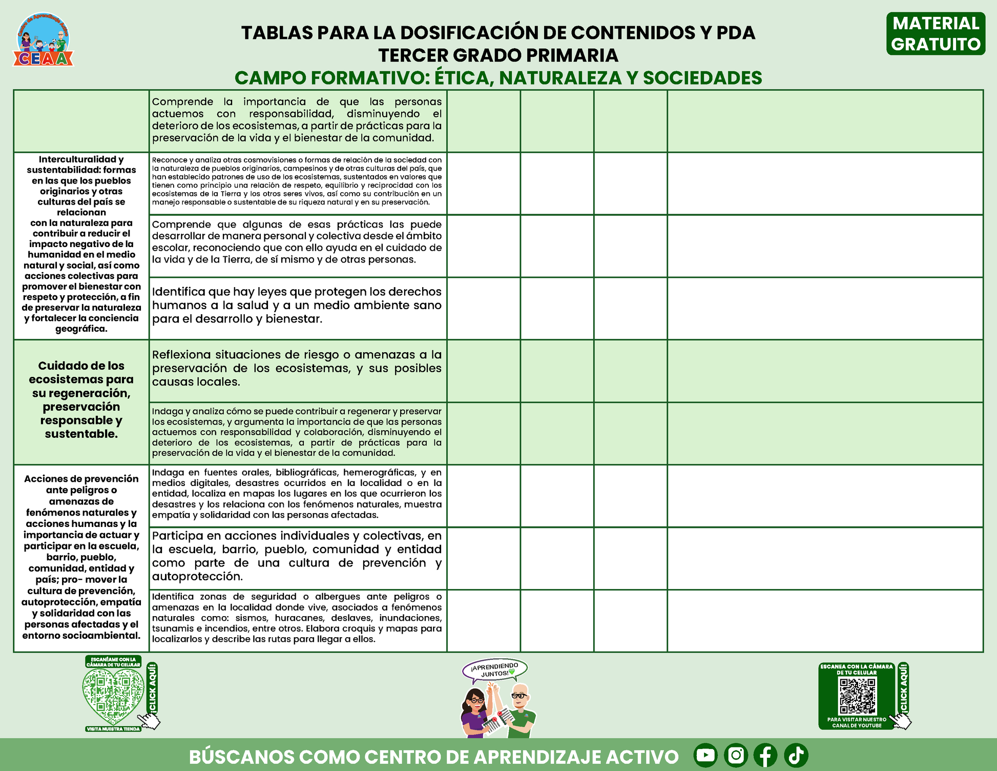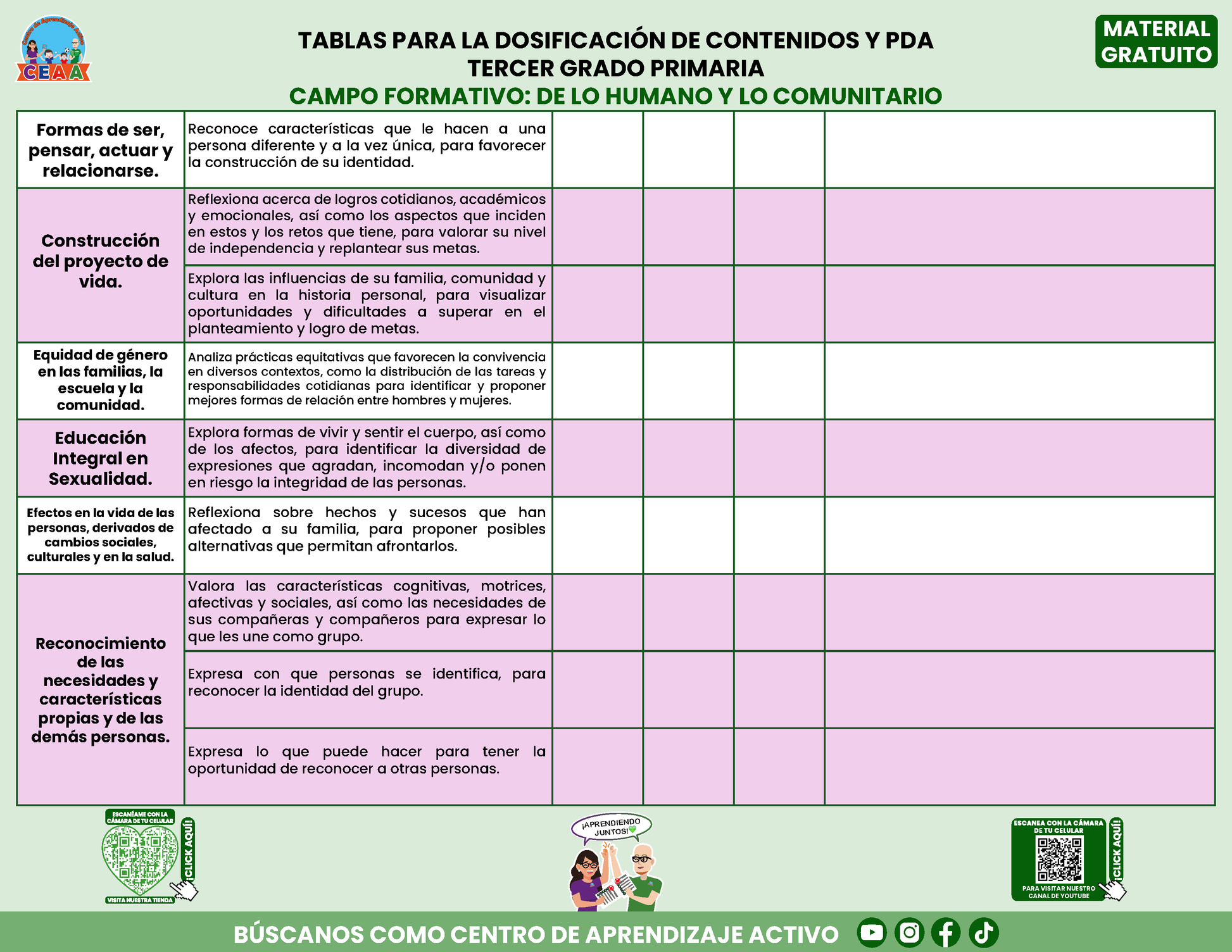 Tablas para la Dosificación de Contenidos y PDA por Campo Formativo - Tercer Grado Primaria en PDF