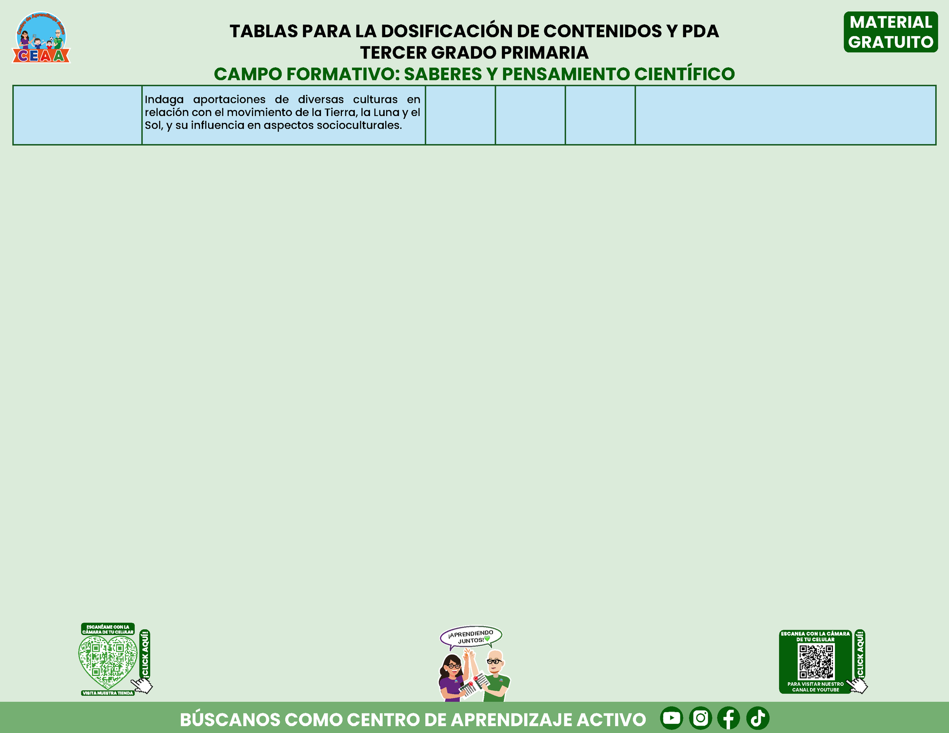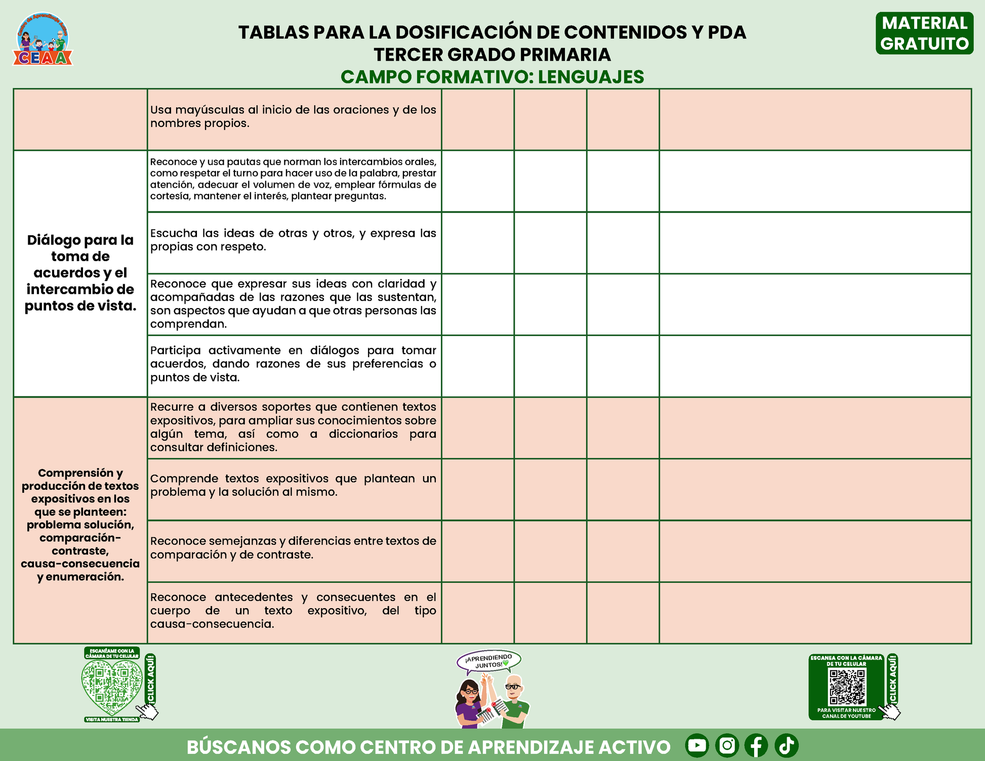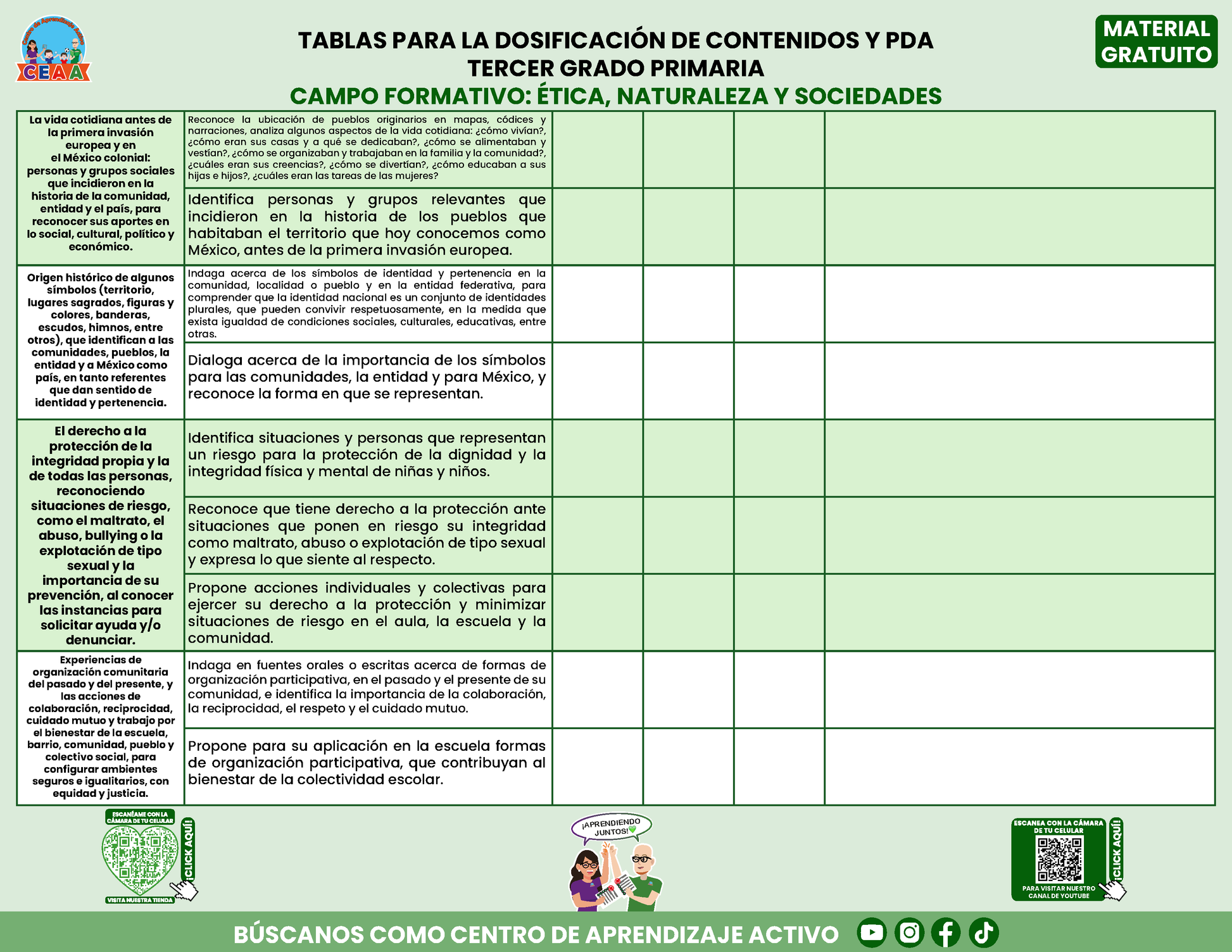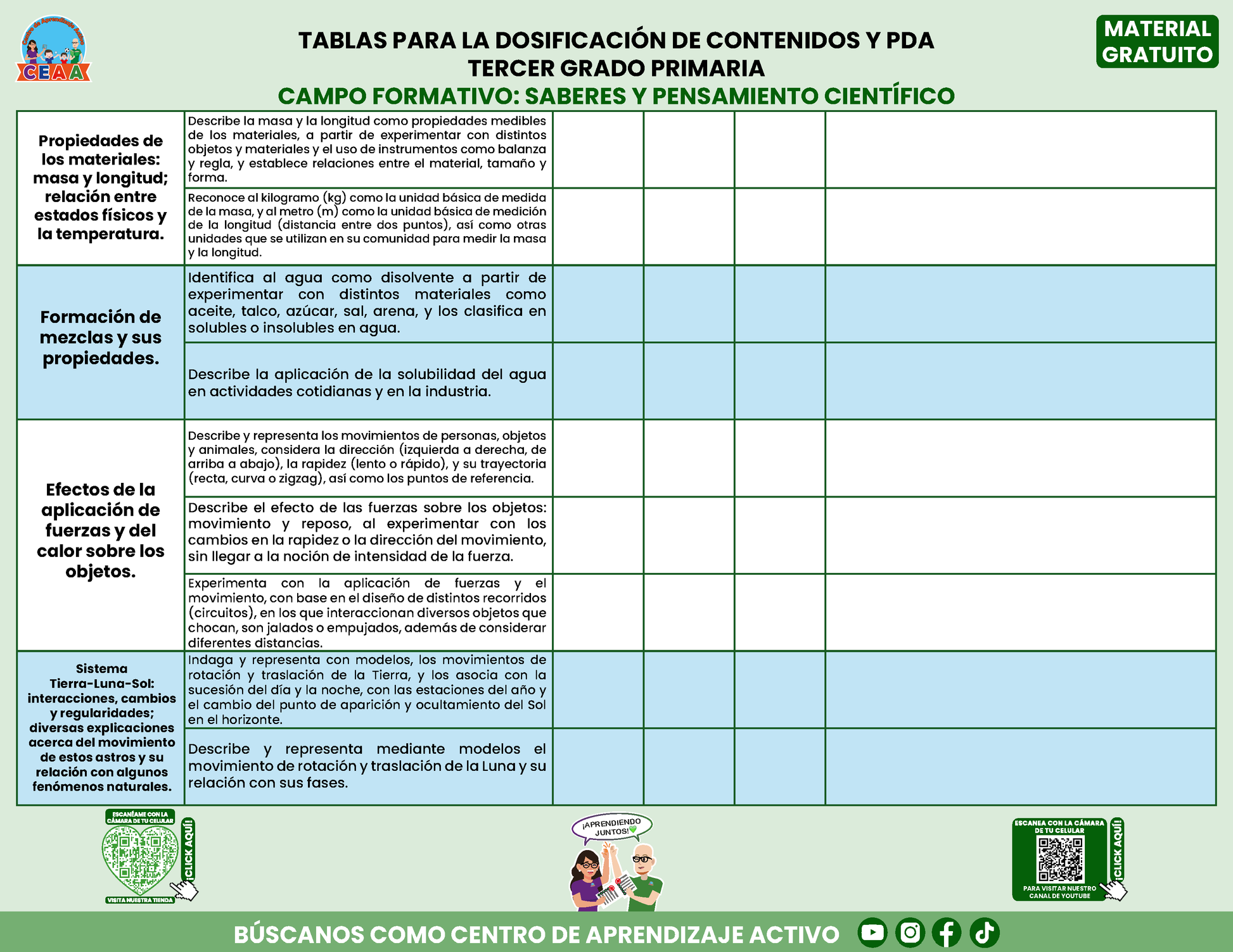 Tablas para la Dosificación de Contenidos y PDA por Campo Formativo - Tercer Grado Primaria en PDF